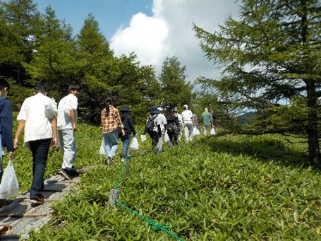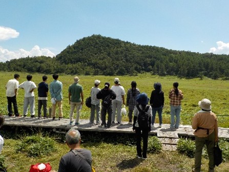 20日の朝食は自炊体験でカレーライスを作りました。食後に山荘周辺を散策した後、退荘式を行い、バスに乗って池の平に行き、池の平湿原のハイキングを行いました。池の平湿原は海抜約2000メートルの高さにあり、東京の酷暑とは異なる世界を体験しました。向かいの山に向かって「ヤッホー」と叫んで「やまびこ」を楽しみました。