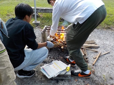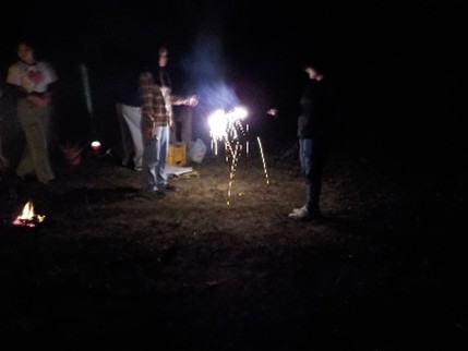 19日夜は、山荘のグランドでキャンプファイヤーや花火を行いました。